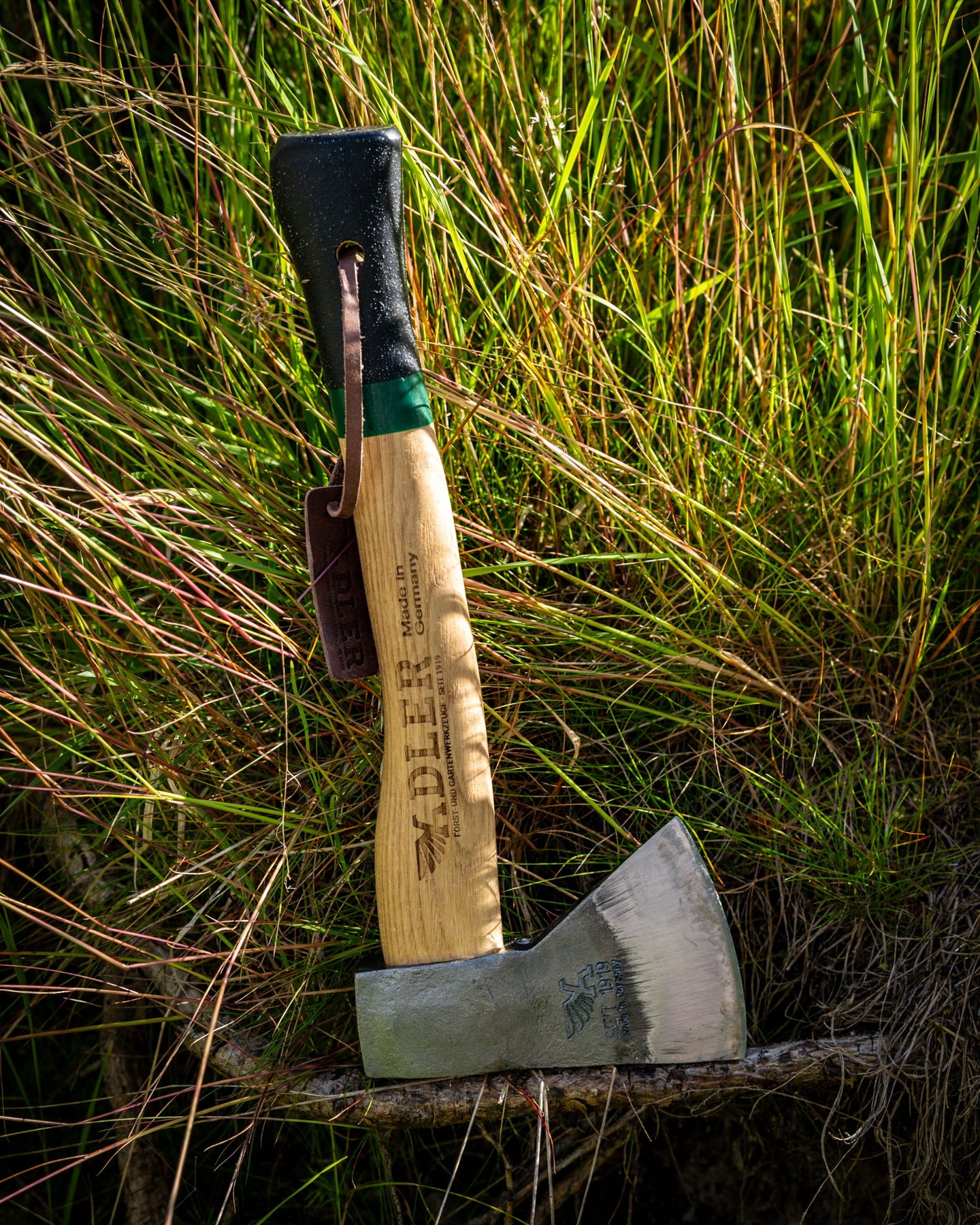 Genieße Deine Zeit in der Natur! Unsere Äxte & Beile sind auf höchste Funktionalität und ergonomisches Arbeiten ausgelegt, damit Du Dir keine Gedanken über das richtige Werkzeug machen musst.  Die Werkzeugköpfe werden ausschließlich aus geprüften Kohlenstoffstählen (C60 oder C45) geschmiedet, extra scharf geschliffen und mit Rostschutz überzogen. Wir fertigen unsere Werkzeugstiele aus original US Hickory oder Europäischer Esche. Beide Holzsorten sind explizit von der DIN für Forstgeräte vorgesehen. Das Griffende ist bei allen Äxten & Beilen mit einem speziellen Anti-Rutsch-Lack versehen. Dadurch liegt dein Werkzeug immer sicher in der Hand, egal ob mit Handschuhen oder ohne.