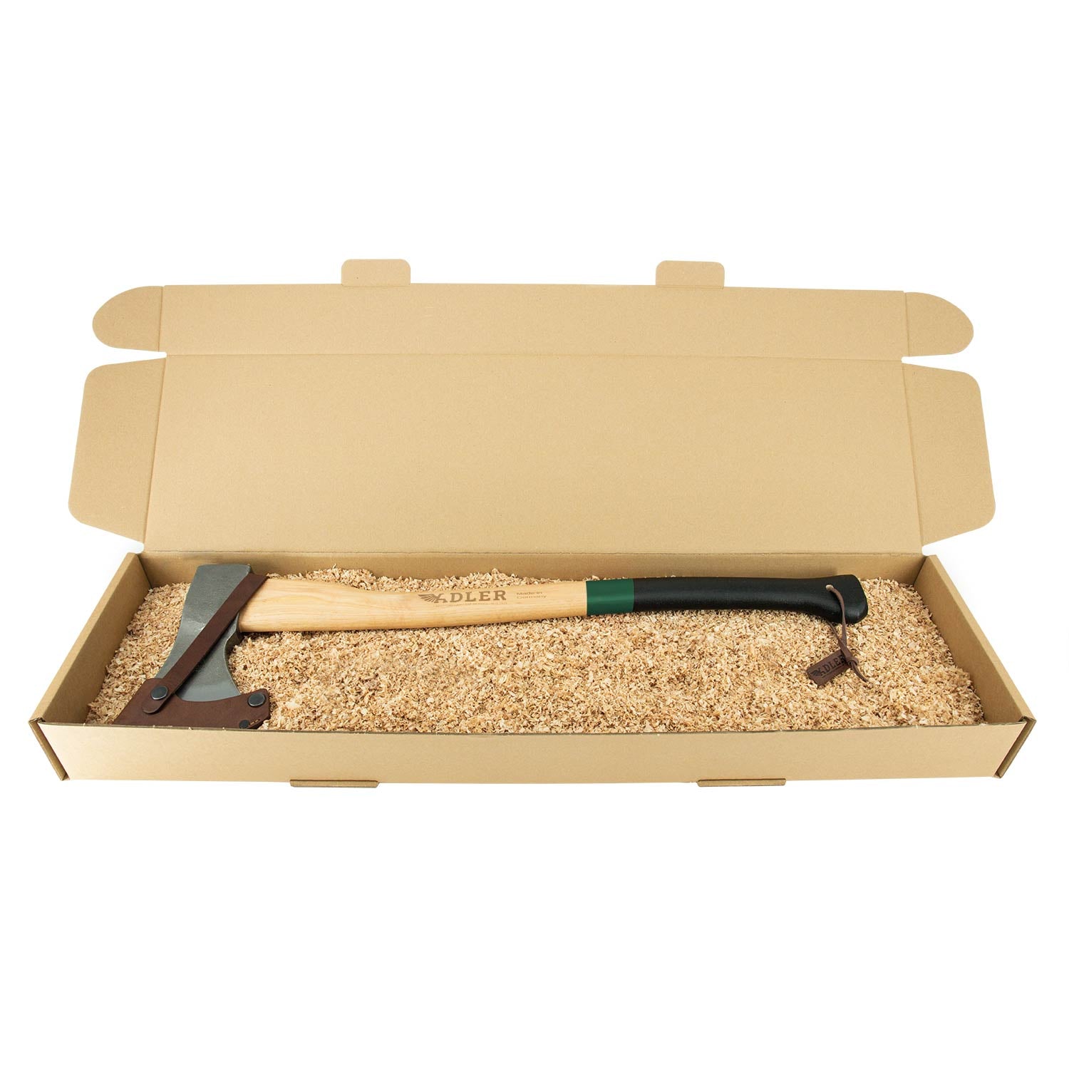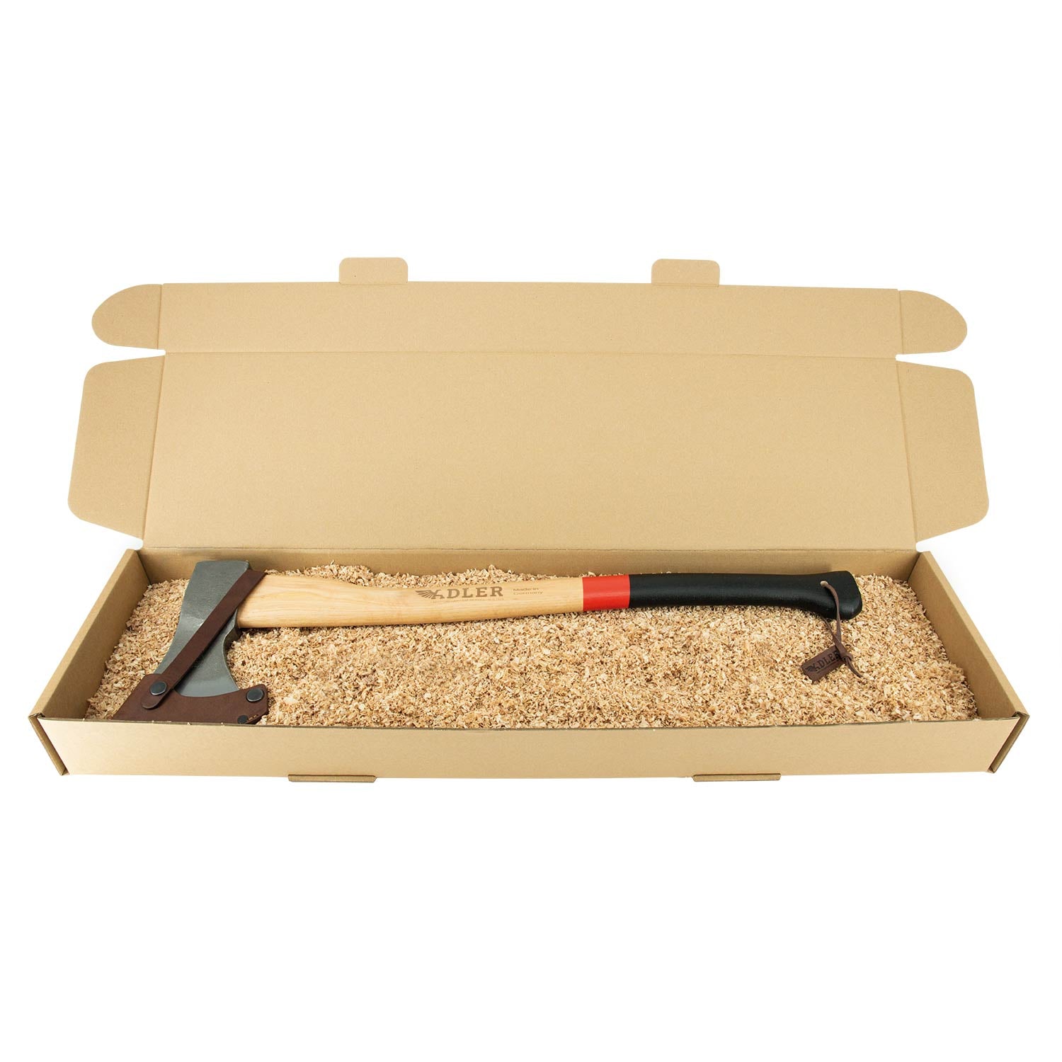 - Als Füllmaterial beim Versand werden Holzspäne eingesetzt, die bei der Produktion der Werkzeuge entstehen und vielseitig weiterverwendet werden können (als Dekoration, Kissenfüllung, Kleintierstreu, im Garten u.v.m.)
